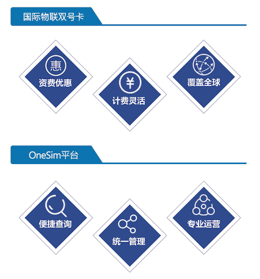 一卡双号OneSIM平台为企业客户提供全球物联网卡连接管理和运维服务,包括企业信息管理、账户管理及资费管理等功能。产品具有低资费、计费灵活、海外覆盖区域范围广等优势。